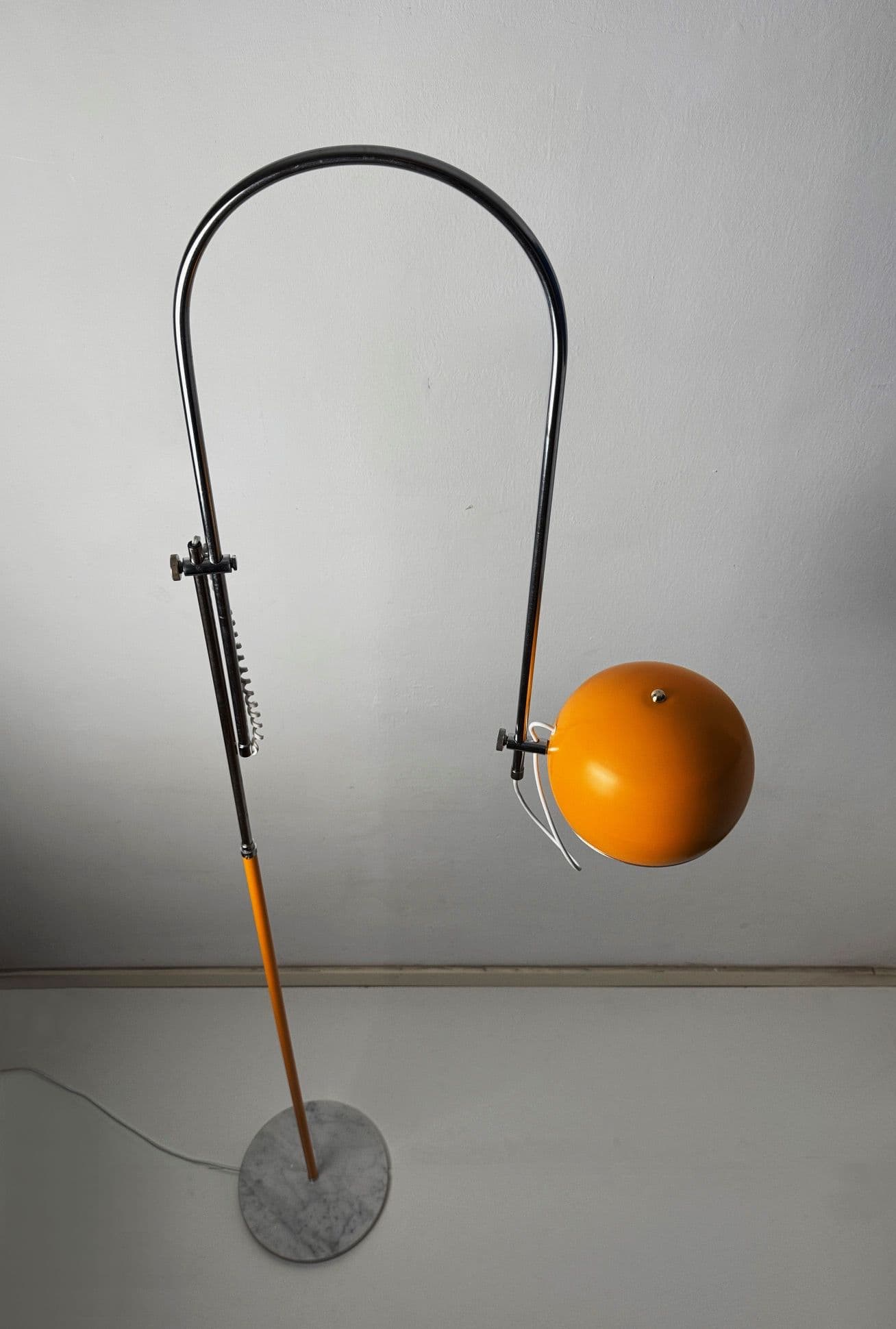 Lámpara arco de pie eyeball vintage con base de mármol 70s