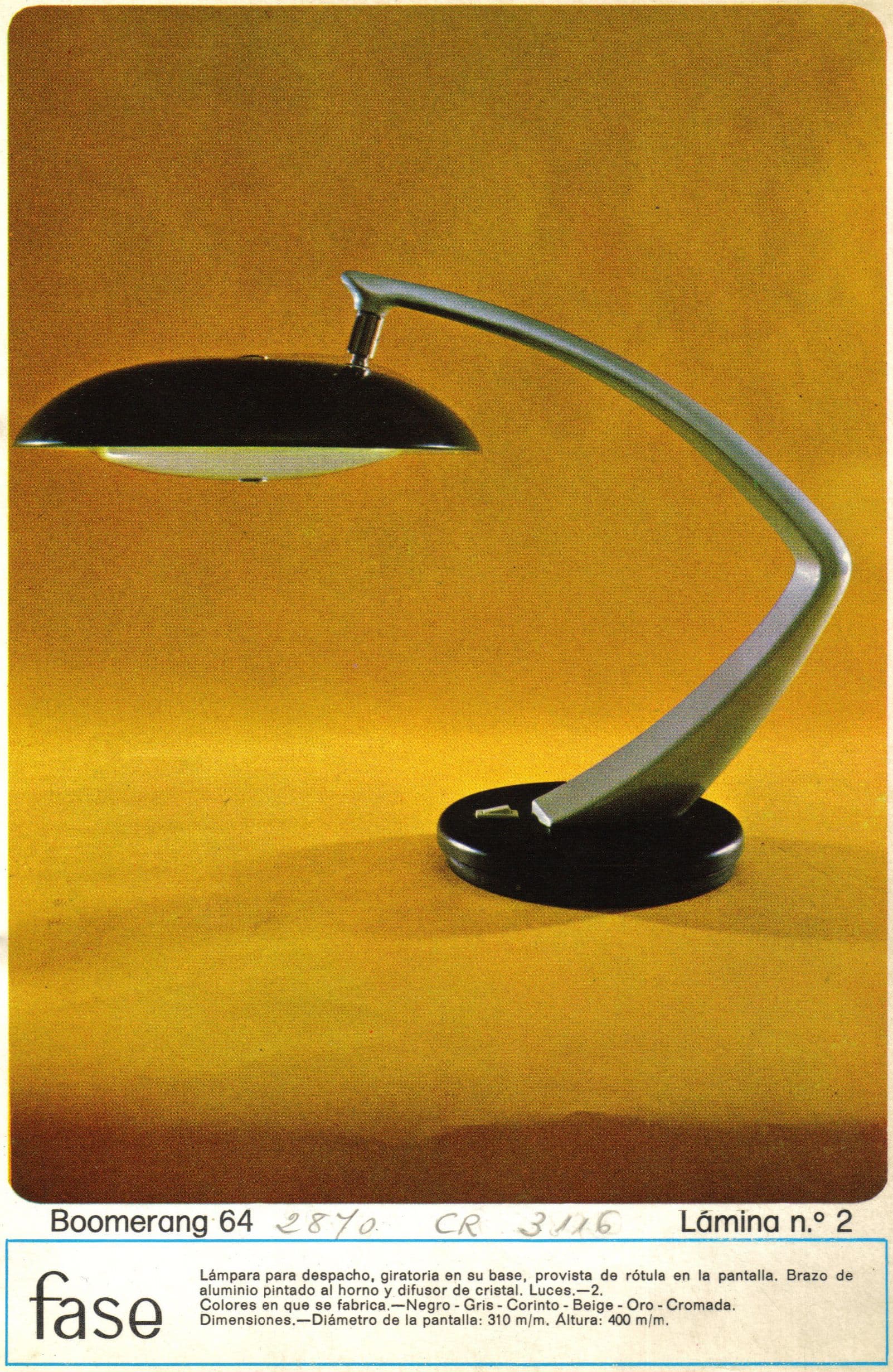 Lámpara de mesa Fase Boomerang 64 diseño de Luis Pérez de la Oliva 70s, España